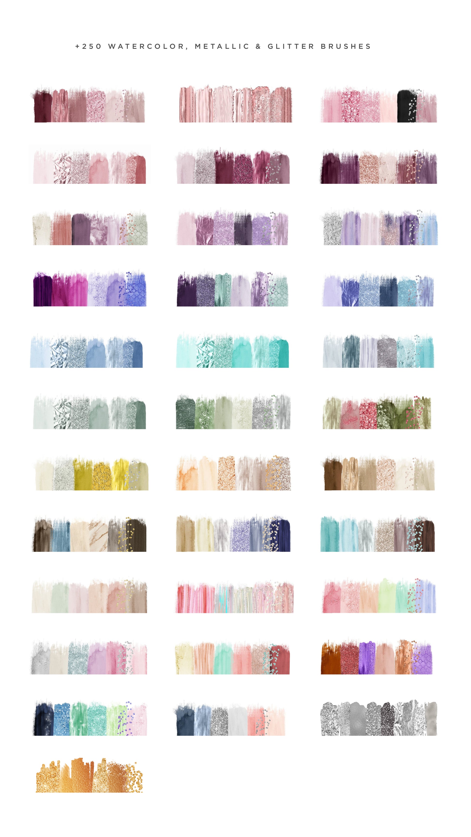 Más de 250 brushes individuales con diferentes texturas en PNG (fondo transparente).