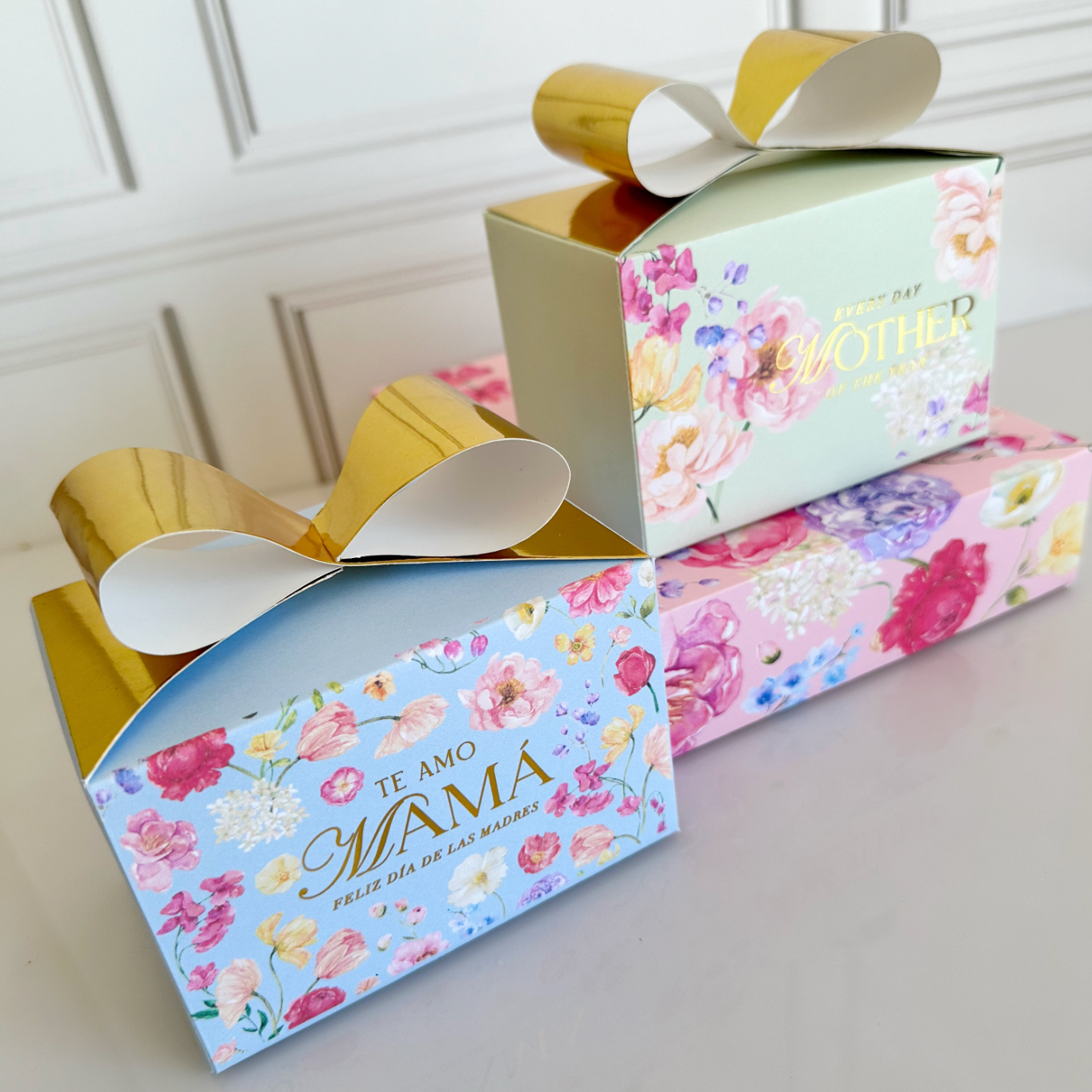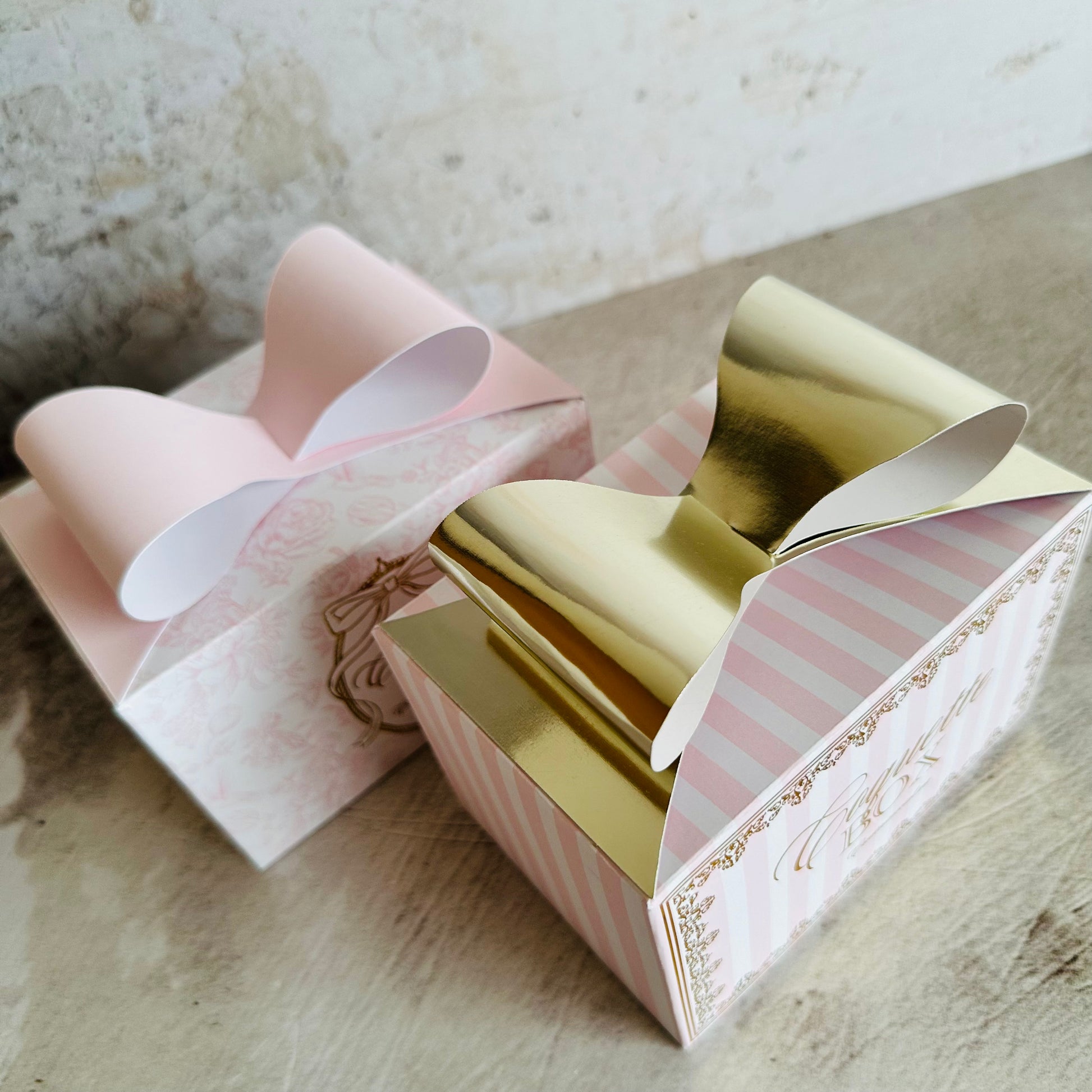 Este template se arma con dos hojas carta. Para el moño puedes utilizar diferente material o puedes acomodar uno en cada hoja carta de la base de la caja.