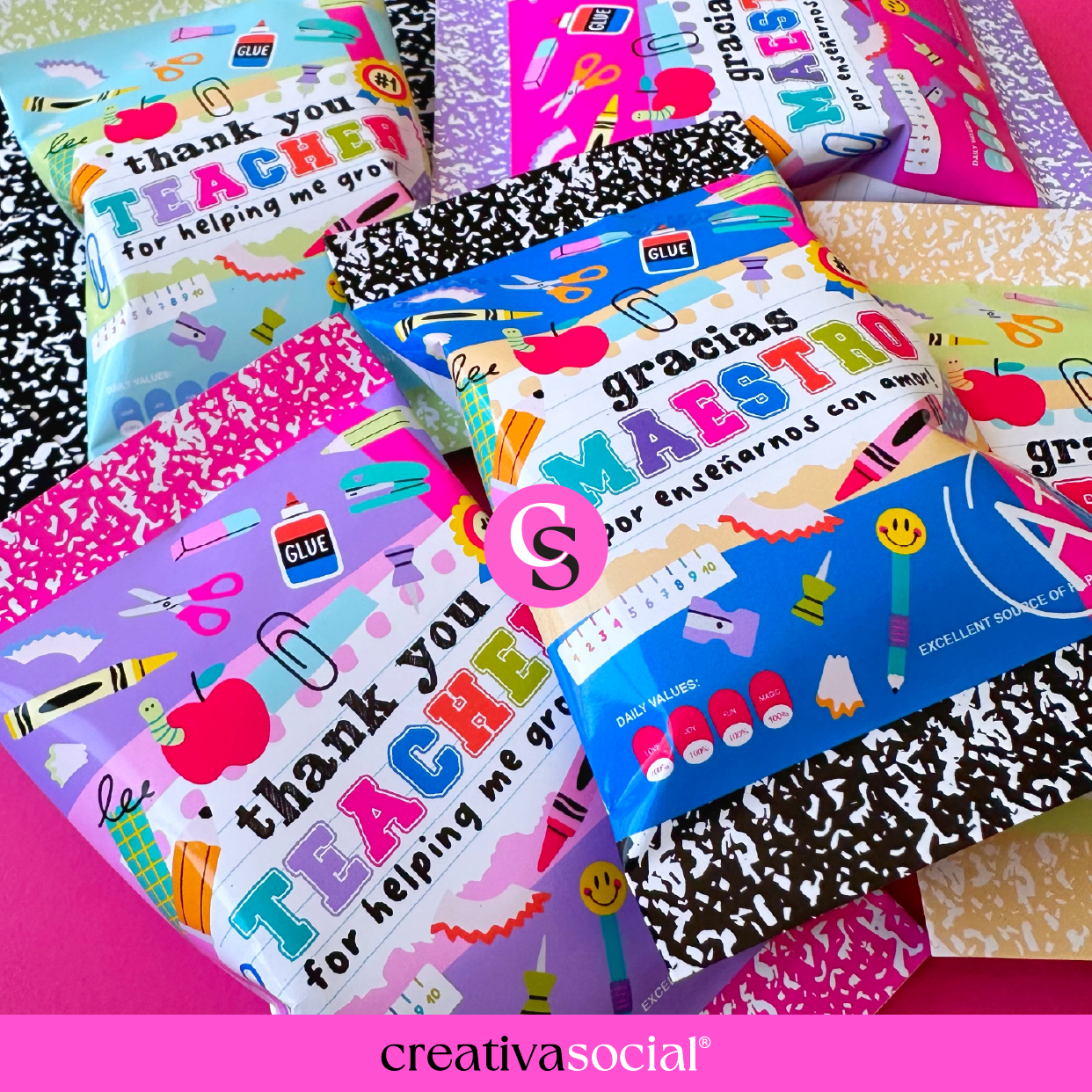 - 15 diseños de chip bags texto en español (5 maestro, 5 maestra y 5 profe)