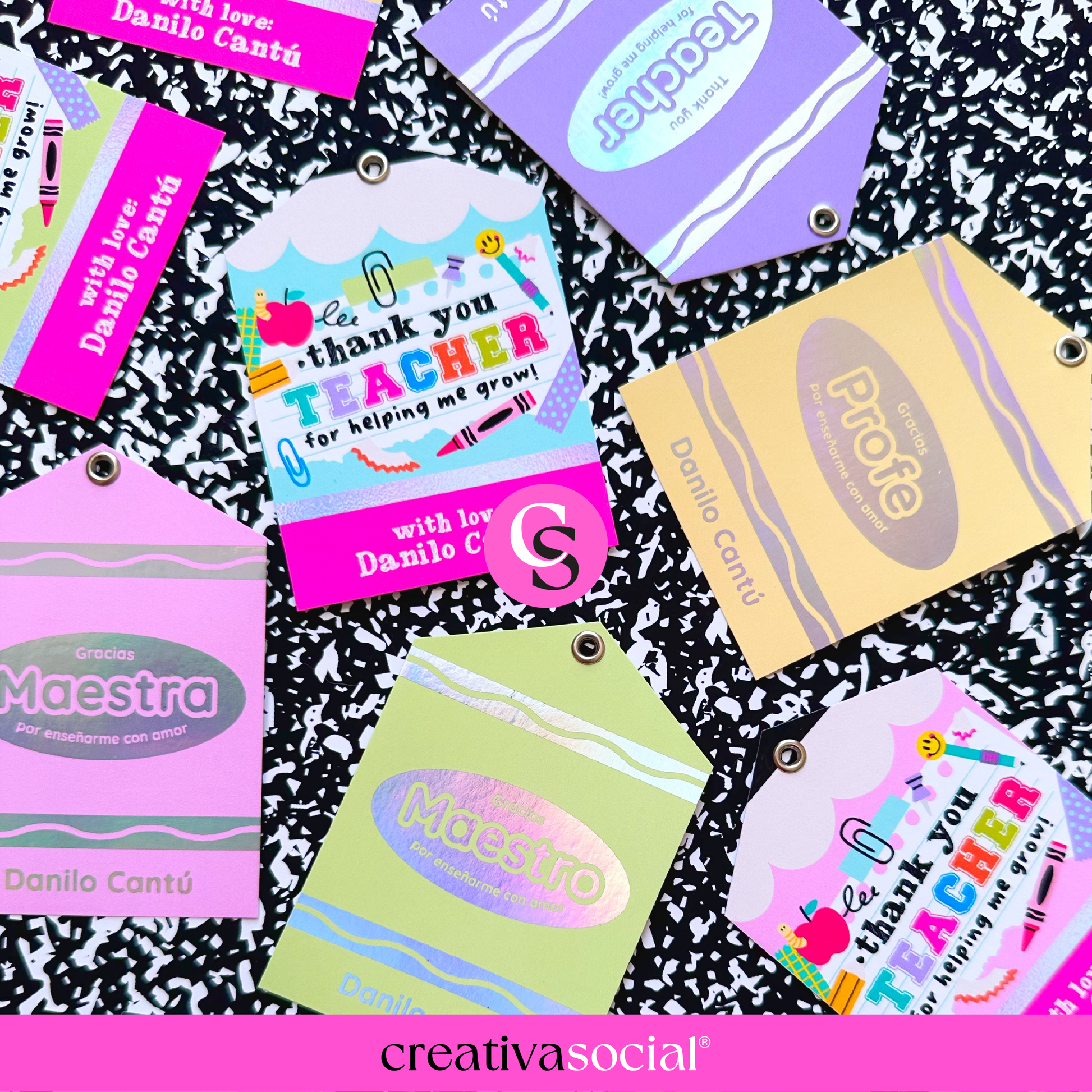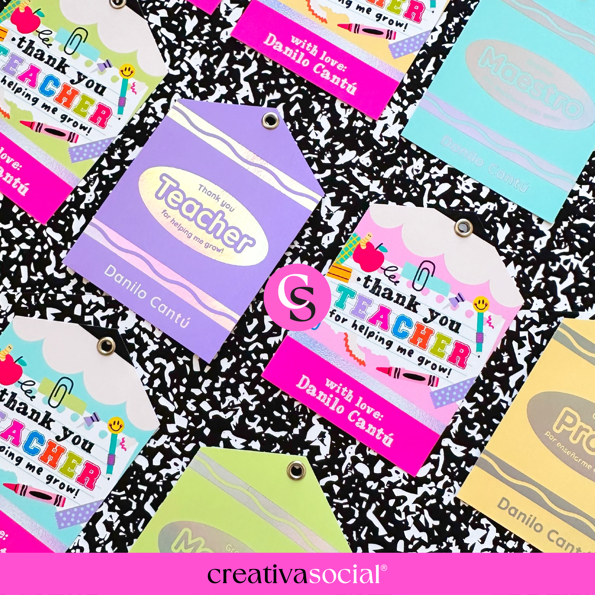 - 11 diseños de tags 6 x 8.5 cm con textos en español/ingles y sin texto (para agregar foil y/o personalizar)