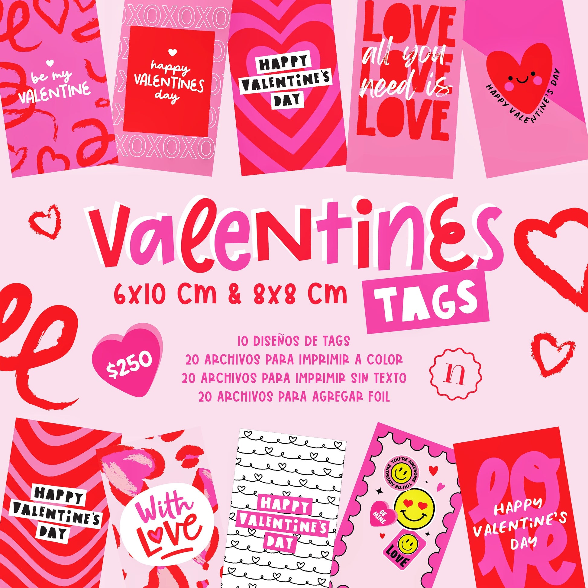 - 20 archivos para agregar foil (10 tags 6x10 cm y 10 tags 8x8 cm)